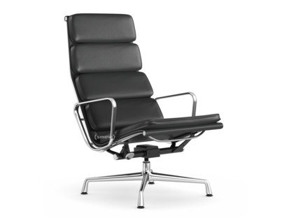Soft Pad Chair EA 222, Piétement chromé, Cuir Standard nero, Plano nero