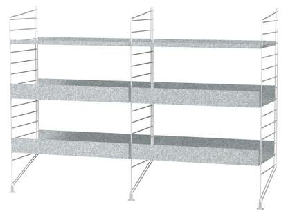 | Fonctions & Propriétés | L'acier galvanisé ne rouille pas et se patine avec le temps L'étagère au sol String Outdoor préconfigurée peut être complétée et modifiée de manière flexible par d'autres éléments Outdoor. Le système d'étagères String est également configurable individuellement. Combinez à votre guise des parois latérales avec les accessoires correspondants. Créez votre étagère personnalisée String en ligne à l'aide de notre configurateur String et procurez-vous toutes les pièces détachées en seulement quelques clics sur smow. Ouvrir le configurateur String mainte |