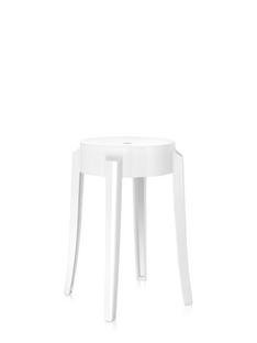 Le tabouret Charles Ghost fait partie de la célèbre série de Starck Ghost Chairs pour Kartell et émane de la star du design Philippe Starck. Celui-ci est né en 1949 à Paris, et fait carrière de plusieurs années déjà, comme architecte d’intérieur et designer de produit. Il a conçu plusieurs objets pour la maison d’édition Kartell, spécialement orienté dans la fabrication de meuble de design en plastique. Le tabouret Charles Ghost est constituée de polycarbonate qui est injecté par seringue dans un moule afin de produire la chaise d’une pièce. La particularité de cette assise est naturellement la combinaison entre le style baroque et les techniques industrielles modernes. La transparence fait apparaître ou disparaître le tabouret de son environnement tel un fantôme. Ce jeu optique lui confère un statut particulier dans une pièce.
