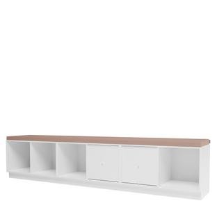 Le meuble Rest III du fabricant scandinave Montana offre non seulement beaucoup d'espace de rangement fermé et ouvert, mais dispose également d'une assise confortable. Les quatre compartiments ouverts et les deux tiroirs offrent un espace de rangement suffisant dans l'entrée, la chambre à coucher ou le salon. La banquette est encore plus confortable grâce au coussin d'assise harmonieusement assorti.