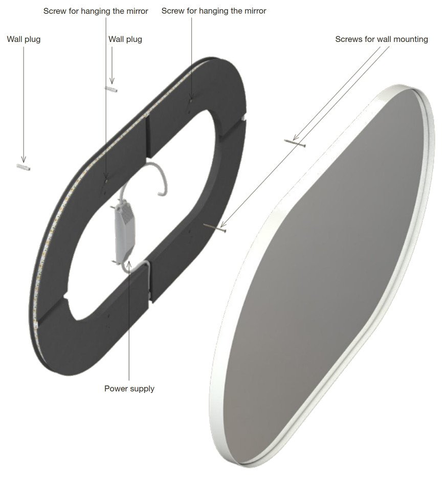 | Compatibilité | VEUILLEZ NOTER : Cette plaque LED est parfaitement adaptée aux miroirs Unu fabriqués à partir d'octobre 2025. Si votre miroir Unu a été fabriqué avant octobre 2025, l'espacement des trous existants dans le cadre du miroir est différent. Il est tout de même possible d'utiliser la plaque LED, mais cela nécessite au préalable une petite adaptation manuelle. Dans ce cas, nous proposons un gabarit de perçage adapté, que nous vous fournirons volontiers lors d'un entretien avec notre service client. |