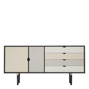 Buffet S6, Chêne laqué noir, Argent-Blanc/beige/gris