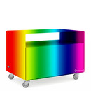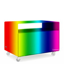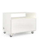 | Fonctions & Propriétés | Soudé à la main à partir d'une tôle d'acier de 2,5 mm d'épaisseur Avec porte battante et tablette Passe-câbles au verso du meuble: H 4 cm Position au passe-câbles: en bas sur toute la largeur Roulettes industrielles et transparentes, chacune avec freins à l'arrière Poids max. jusqu'à 50 kg |