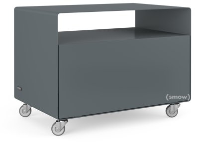 | Fonctions & Propriétés | Soudé à la main à partir d'une tôle d'acier de 2,5 mm d'épaisseur Avec porte battante et tablette Passe-câbles au verso du meuble: H 4 cm Position au passe-câbles: en bas sur toute la largeur Roulettes industrielles et transparentes, chacune avec freins à l'arrière Poids max. jusqu'à 50 kg |