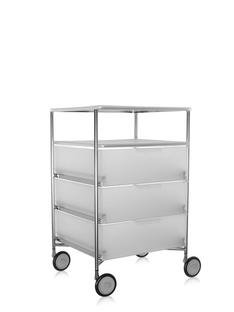 Mobil est un meuble de rangement conçu par les designers italiens Antonio Citterio et Oliver Löw pour Kartell. Malin, Mobil assure l'ordre et de l'organisation de la vie au quotidien ou au bureau. L'ingéniosité repose sur le fait que l'on peut configurer l'objet selon les besoins. Ainsi, il peut être mobile avec l'ajout de roues, avoir des compartiments ouverts ou des tiroirs au nombre souhaité. La structure est en acier chromé et les casiers en plastique robuste PMMA. Ces derniers se déclinent dans un large choix de couleurs glamour et d'opacités. Avec Mobil, vous êtes sûr de répondre à votre besoin d'ordre, car il suffit de choisir les options : qu'est-il le plus important pour vous ? La mobilité, c'est-à-dire le dynamisme et la réactivité ? Ou plutôt, le stockage de papier ? D'objets ? Le tout à la fois ? L'atout supplémentaire est que son design simple et coloré s'adapte aux diverses circonstances et aux différents espaces. Il sera ainsi parfait en table de chevet, en meuble d'appoint dans une salle d'eau, mais aussi disposé sous un bureau ou dans une salle d'attente. Et oui, les applications du conteneur roulant Mobil de chez Kartell n'ont aucune limite pour notre plus grande aide. En conclusion, Mobil offre légèreté, mobilité, fonctionnalité, résistance et durabilité avec style.