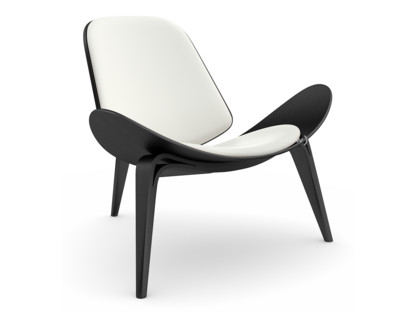 Chaise CH07 Shell, Chêne laqué noir, Cuir blanc