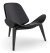 Chaise CH07 Shell, Chêne laqué noir, Cuir anthracite