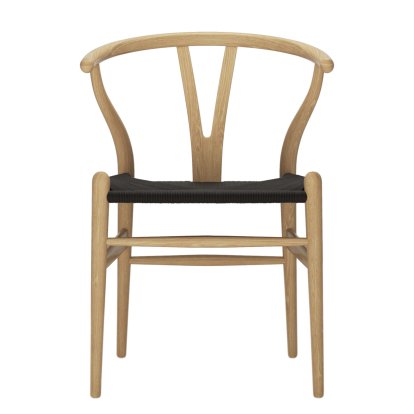 Hans J. Wegner, qui conçut la chaise CH24 Wishbone Chair en 1949, était présent fin des années 1940 dans des cercles d’experts et reconnut par les critiques pour son design extraordinaire. Le manager commercial du fabricant Carl Hansen & Søn de l’époque, Eivind Kold Christensen, reconnut le potentiel du designer Wegner lors d’une de ses expositions en 1949 à Copenhague et lui proposa ainsi la fabrication des chaises pour Carl Hansen & Søn. Dès lors, Wegner développe quatre modèles, dont la chaise CH24, qui contrairement à ses modèles précédents sont fabriqués en partie avec des machines et donc adéquats pour la production en série. La chaise CH24 pour Carl Hansen ne fut pas seulement un vif succès pour le designer, mais aussi un produit-phare de la gamme du fabricant. La caractéristique de la chaise CH24 Wishbone Chair est la forme en Y de son dossier, d’où parfois son nom de chaise Y. La CH24 possède un design épuré et ergonomique de façon très harmonieuse et offre un confortable espace d’assise contrairement aux autres chaises de Wegner. Le succès infaillible de la chaise CH24 se reconnaît par la fabrication continuelle par le fabricant depuis plus de 60 ans et revient certainement à son beau galbe et à la qualité du fait main.