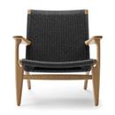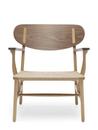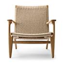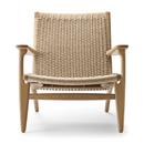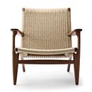 La chaise CH25 Lounge Chair a été l'un des premiers meubles conçus par Hans J. Wegner pour le fabricant Carl Hansen & Søn et date de 1950. Les pieds coniques et le siège suspendu au-dessus des pieds avant confèrent à ce classique du design une apparente légèreté. Le paillage de cet élégant fauteuil se compose d'environ 300 mètres de corde, dont la production dure environ 8 à 10 heures. En plus du fauteuil CH25, Wegner et Carl Hansen & Søn ont collaboré sur d'innombrables objets, également considérés comme des icônes de design avec par exemple la chaise Shell et la chaise Wishbone.