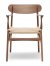 La chaise CH26 est fabriquée par Carl Hansen & Søn d'après des dessins originaux du designer Hans J. Wegner datant de 1950, qui ont été redécouverts. La signature design de Hans J. Wegner est également clairement visible sur le piètement de la chaise CH26 qui possèdent formes organiques, nuances de bois clairs, dossier et assise paillé. Tout comme la chaise longue CH22 de Wegner, l'assise CH26 dispose également d'une forme ergonomique et de la forme incurvée des accotoirs si caractéristique.