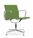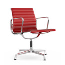 Les chaises EA 107/108 sont le résultat d’une commande que Ray et Charles Eames reçurent de leur ami de longue date l’architecte Eero Saarinen. Celui-ci cherchait une chaise de très haute qualité pour l’espace extérieur de la villa privée d’Herman Miller, celle-ci construite en collaboration avec Alexander Girard. Après une longue phase de prototypage, Charles & Ray Eames présentèrent enfin le concept Aluminium Chair. Ce dernier était pensé pour concevoir toute une série de chaises dont la chaise EA 108 fait partie. Les chaises avaient en commun les matériaux et le principe de construction. L’assise et le dossier ainsi que les accotoirs forment des parties latérales en l’aluminium injecté sur lesquelles du tissu ou du cuir sont tendus. Le « revêtement » n‘est donc pas une housse, mais la partie qui tient la construction. La forme des parties latérales s’inspire de la colonne vertébrale de l’homme afin de la physionomie du corps s’adapte parfaitement au galbe de la chaise. L’Alu chair EA 108 pour Vitra dispose d’un piètement pivotant à la différence de la chaise EA 107. Les chaises Alu EA 107 et EA 108 sont d’élégantes et raffinées chaises de conférences notamment grâce au spectre de couleurs et de matières du revêtement. On l’apprécie également comme chaise de bureau dans l’espace domestique et professionnel.