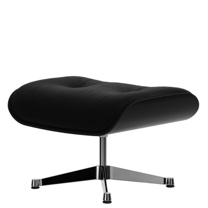 Eames Lounge Chair Ottoman, Châtaignier noir, Cuir Premium F nero, Aluminium poli