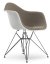 la résine de polyester renforcée de fibre de verre. Ce matériau présentait de nombreux avantages parmi lesquels sa souplesse, son prix abordable et la possibilité de produire les chaises en grandes séries. Cela correspondait donc tout à fait au mot d’ordre des designers Charles et Ray Eames: « Rendre le meilleur accessible au plus grand nombre ». Aujourd’hui, les chaises « Eames Plastic Chairs » sont en polypropylène et disponibles avec différents piétements sous forme de fauteuils « Eames Armchairs » ou de chaises « Side Chairs ». Enfin, DAR signifie Dining height Armchair Rod Base, ce qui fait référence à une chaise de salle à manger à quatre pieds en fils d’acier.