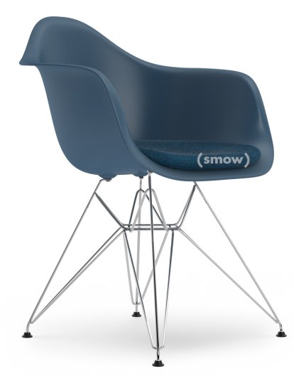 Eames Plastic Armchair RE DAR, Bleu océan, Avec coussin d'assise, Bleu océan / gris foncé, Version standard - 43 cm, Chromé
