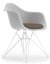 la résine de polyester renforcée de fibre de verre. Ce matériau présentait de nombreux avantages parmi lesquels sa souplesse, son prix abordable et la possibilité de produire les chaises en grandes séries. Cela correspondait donc tout à fait au mot d’ordre des designers Charles et Ray Eames: « Rendre le meilleur accessible au plus grand nombre ». Aujourd’hui, les chaises « Eames Plastic Chairs » sont en polypropylène et disponibles avec différents piétements sous forme de fauteuils « Eames Armchairs » ou de chaises « Side Chairs ». Enfin, DAR signifie Dining height Armchair Rod Base, ce qui fait référence à une chaise de salle à manger à quatre pieds en fils d’acier.