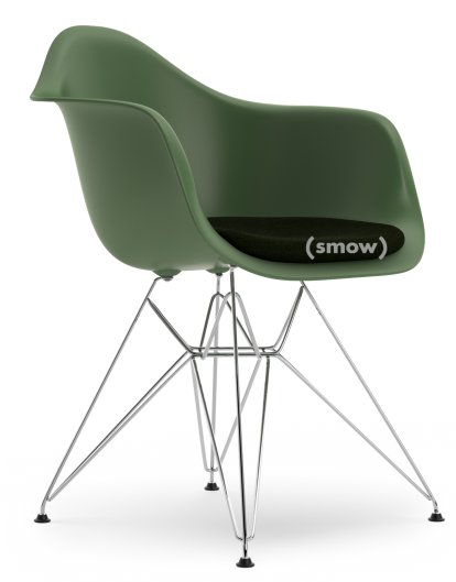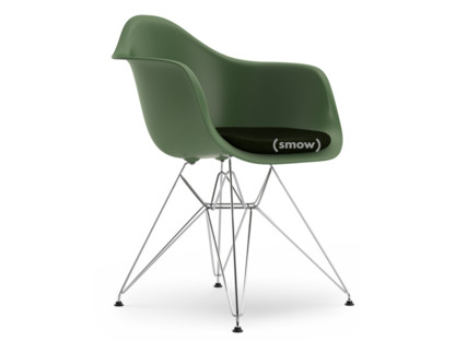 Eames Plastic Armchair RE DAR, Forêt, Avec coussin d'assise, Nero / forêt, Version standard - 43 cm, Chromé