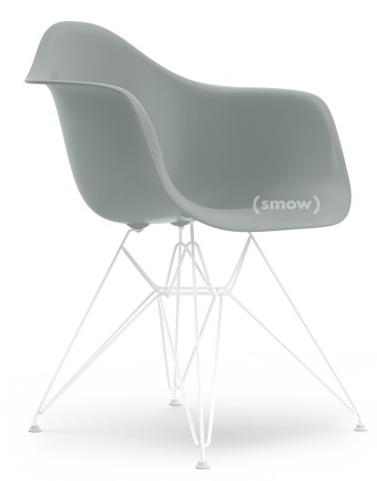 la résine de polyester renforcée de fibre de verre. Ce matériau présentait de nombreux avantages parmi lesquels sa souplesse, son prix abordable et la possibilité de produire les chaises en grandes séries. Cela correspondait donc tout à fait au mot d’ordre des designers Charles et Ray Eames: « Rendre le meilleur accessible au plus grand nombre ». Aujourd’hui, les chaises « Eames Plastic Chairs » sont en polypropylène et disponibles avec différents piétements sous forme de fauteuils « Eames Armchairs » ou de chaises « Side Chairs ». Enfin, DAR signifie Dining height Armchair Rod Base, ce qui fait référence à une chaise de salle à manger à quatre pieds en fils d’acier.