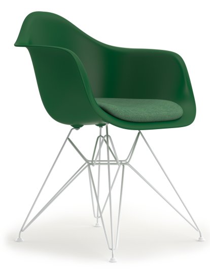 Eames Plastic Armchair DAR, Vert émeraude, Avec coussin d'assise, Vert / ivoire, Version standard - 43 cm, Revêtement blanc