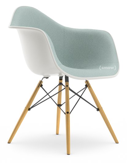 En utilisant des procédés de fabrications et des matériaux nouveaux, Charles et Ray Eames révolutionnèrent plus d’une fois l’histoire du mobilier. Ce fut le cas notamment avec les plastic chairs, qui furent conçues en 1948 à l’occasion du concours organisé par le Museum of Modern Art de New York : "International Competition for Low Cost Furniture". Avec leurs chaises dont l’assise est constituée d’un seul bloc en résine de polyester renforcée de fibre de verre, les Eames remportèrent la deuxième place. Ce matériau présentait de nombreux avantages parmi lesquels sa souplesse, son prix abordable et la possibilité de produire les chaises en grandes séries, ce qui répondait tout à fait aux besoins de l’Amérique des années 1950. En plus du fauteuil DAW, Charles et Ray Eames créèrent bien d’autres chaises en plastique adaptées à diverses situations grâce à différents types d’assises et de piètements. On les retrouve d’ailleurs aujourd’hui dans de nombreux musées et dans un nombre incalculable de foyers. Pour ce qui est du Eames DAW, il s’agit d’un fauteuil confortable avec des pieds en érable. Charles et Ray Eames décrivaient l'un de leurs objectifs primordiaux en tant que créateurs de mobilier comme suit : « Rendre le meilleur accessible au plus grand nombre ». Parmi leurs créations, aucune autre ne semble leur avoir permis de s'approcher autant de cet idéal que le fauteuil DAW.