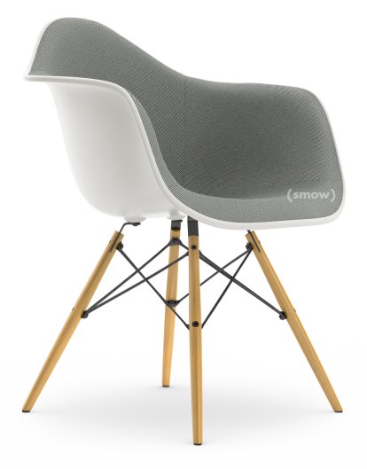En utilisant des procédés de fabrications et des matériaux nouveaux, Charles et Ray Eames révolutionnèrent plus d’une fois l’histoire du mobilier. Ce fut le cas notamment avec les plastic chairs, qui furent conçues en 1948 à l’occasion du concours organisé par le Museum of Modern Art de New York : "International Competition for Low Cost Furniture". Avec leurs chaises dont l’assise est constituée d’un seul bloc en résine de polyester renforcée de fibre de verre, les Eames remportèrent la deuxième place. Ce matériau présentait de nombreux avantages parmi lesquels sa souplesse, son prix abordable et la possibilité de produire les chaises en grandes séries, ce qui répondait tout à fait aux besoins de l’Amérique des années 1950. En plus du fauteuil DAW, Charles et Ray Eames créèrent bien d’autres chaises en plastique adaptées à diverses situations grâce à différents types d’assises et de piètements. On les retrouve d’ailleurs aujourd’hui dans de nombreux musées et dans un nombre incalculable de foyers. Pour ce qui est du Eames DAW, il s’agit d’un fauteuil confortable avec des pieds en érable. Charles et Ray Eames décrivaient l'un de leurs objectifs primordiaux en tant que créateurs de mobilier comme suit : « Rendre le meilleur accessible au plus grand nombre ». Parmi leurs créations, aucune autre ne semble leur avoir permis de s'approcher autant de cet idéal que le fauteuil DAW.