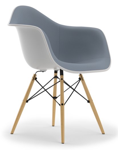 En utilisant des procédés de fabrications et des matériaux nouveaux, Charles et Ray Eames révolutionnèrent plus d’une fois l’histoire du mobilier. Ce fut le cas notamment avec les plastic chairs, qui furent conçues en 1948 à l’occasion du concours organisé par le Museum of Modern Art de New York : "International Competition for Low Cost Furniture". Avec leurs chaises dont l’assise est constituée d’un seul bloc en résine de polyester renforcée de fibre de verre, les Eames remportèrent la deuxième place. Ce matériau présentait de nombreux avantages parmi lesquels sa souplesse, son prix abordable et la possibilité de produire les chaises en grandes séries, ce qui répondait tout à fait aux besoins de l’Amérique des années 1950. En plus du fauteuil DAW, Charles et Ray Eames créèrent bien d’autres chaises en plastique adaptées à diverses situations grâce à différents types d’assises et de piètements. On les retrouve d’ailleurs aujourd’hui dans de nombreux musées et dans un nombre incalculable de foyers. Pour ce qui est du Eames DAW, il s’agit d’un fauteuil confortable avec des pieds en érable. Charles et Ray Eames décrivaient l'un de leurs objectifs primordiaux en tant que créateurs de mobilier comme suit : « Rendre le meilleur accessible au plus grand nombre ». Parmi leurs créations, aucune autre ne semble leur avoir permis de s'approcher autant de cet idéal que le fauteuil DAW.