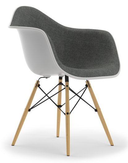 En utilisant des procédés de fabrications et des matériaux nouveaux, Charles et Ray Eames révolutionnèrent plus d’une fois l’histoire du mobilier. Ce fut le cas notamment avec les plastic chairs, qui furent conçues en 1948 à l’occasion du concours organisé par le Museum of Modern Art de New York : "International Competition for Low Cost Furniture". Avec leurs chaises dont l’assise est constituée d’un seul bloc en résine de polyester renforcée de fibre de verre, les Eames remportèrent la deuxième place. Ce matériau présentait de nombreux avantages parmi lesquels sa souplesse, son prix abordable et la possibilité de produire les chaises en grandes séries, ce qui répondait tout à fait aux besoins de l’Amérique des années 1950. En plus du fauteuil DAW, Charles et Ray Eames créèrent bien d’autres chaises en plastique adaptées à diverses situations grâce à différents types d’assises et de piètements. On les retrouve d’ailleurs aujourd’hui dans de nombreux musées et dans un nombre incalculable de foyers. Pour ce qui est du Eames DAW, il s’agit d’un fauteuil confortable avec des pieds en érable. Charles et Ray Eames décrivaient l'un de leurs objectifs primordiaux en tant que créateurs de mobilier comme suit : « Rendre le meilleur accessible au plus grand nombre ». Parmi leurs créations, aucune autre ne semble leur avoir permis de s'approcher autant de cet idéal que le fauteuil DAW.