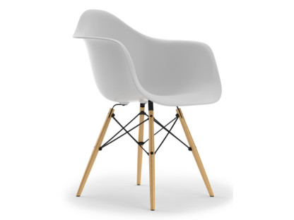 En utilisant des procédés de fabrications et des matériaux nouveaux, Charles et Ray Eames révolutionnèrent plus d’une fois l’histoire du mobilier. Ce fut le cas notamment avec les plastic chairs, qui furent conçues en 1948 à l’occasion du concours organisé par le Museum of Modern Art de New York : "International Competition for Low Cost Furniture". Avec leurs chaises dont l’assise est constituée d’un seul bloc en résine de polyester renforcée de fibre de verre, les Eames remportèrent la deuxième place. Ce matériau présentait de nombreux avantages parmi lesquels sa souplesse, son prix abordable et la possibilité de produire les chaises en grandes séries, ce qui répondait tout à fait aux besoins de l’Amérique des années 1950. En plus du fauteuil DAW, Charles et Ray Eames créèrent bien d’autres chaises en plastique adaptées à diverses situations grâce à différents types d’assises et de piètements. On les retrouve d’ailleurs aujourd’hui dans de nombreux musées et dans un nombre incalculable de foyers. Pour ce qui est du Eames DAW, il s’agit d’un fauteuil confortable avec des pieds en érable. Charles et Ray Eames décrivaient l'un de leurs objectifs primordiaux en tant que créateurs de mobilier comme suit : « Rendre le meilleur accessible au plus grand nombre ». Parmi leurs créations, aucune autre ne semble leur avoir permis de s'approcher autant de cet idéal que le fauteuil DAW.
