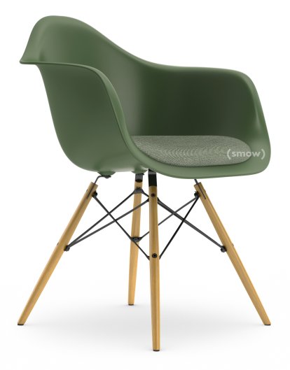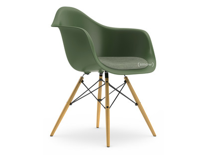 Eames Plastic Armchair RE DAW, Forêt, Avec coussin d'assise, Ivoire / forêt, Version standard - 43 cm, Frêne tons miel