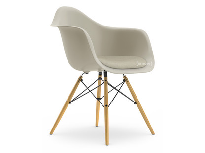 Eames Plastic Armchair RE DAW, Galet, Avec coussin d'assise, Gris chaud / ivoire, Version standard - 43 cm, Frêne tons miel