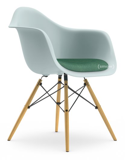 Eames Plastic Armchair DAW, Gris bleuté, Avec coussin d'assise, Menthe / forêt, Version standard - 43 cm, Frêne tons miel
