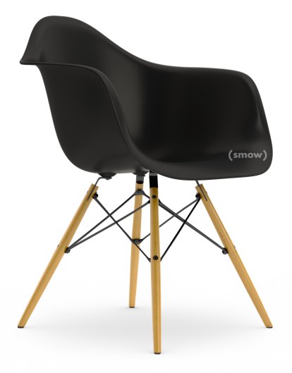 En utilisant des procédés de fabrications et des matériaux nouveaux, Charles et Ray Eames révolutionnèrent plus d’une fois l’histoire du mobilier. Ce fut le cas notamment avec les plastic chairs, qui furent conçues en 1948 à l’occasion du concours organisé par le Museum of Modern Art de New York : "International Competition for Low Cost Furniture". Avec leurs chaises dont l’assise est constituée d’un seul bloc en résine de polyester renforcée de fibre de verre, les Eames remportèrent la deuxième place. Ce matériau présentait de nombreux avantages parmi lesquels sa souplesse, son prix abordable et la possibilité de produire les chaises en grandes séries, ce qui répondait tout à fait aux besoins de l’Amérique des années 1950. En plus du fauteuil DAW, Charles et Ray Eames créèrent bien d’autres chaises en plastique adaptées à diverses situations grâce à différents types d’assises et de piètements. On les retrouve d’ailleurs aujourd’hui dans de nombreux musées et dans un nombre incalculable de foyers. Pour ce qui est du Eames DAW, il s’agit d’un fauteuil confortable avec des pieds en érable. Charles et Ray Eames décrivaient l'un de leurs objectifs primordiaux en tant que créateurs de mobilier comme suit : « Rendre le meilleur accessible au plus grand nombre ». Parmi leurs créations, aucune autre ne semble leur avoir permis de s'approcher autant de cet idéal que le fauteuil DAW.