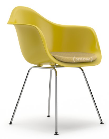Eames Plastic Armchair RE DAX, Moutarde, Avec coussin d'assise, Moutarde / ivoire, Version standard - 43 cm, Chromé