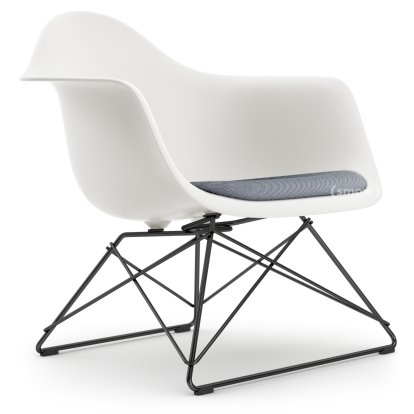 Eames Plastic Armchair RE LAR, Blanc non-RE, Coussin d'assise bleu foncé / ivoire, Revêtement basic dark