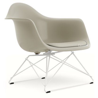 Eames Plastic Armchair RE LAR, Galet, Coussin d'assise gris chaud /ivoire, Revêtement blanc