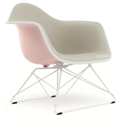 Eames Plastic Armchair RE LAR, Rose pâle, Rembourrage intégral gris chaud / ivoire, Revêtement blanc