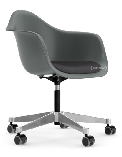 Eames Plastic Armchair RE PACC, Gris granit, Avec coussin d'assise, Gris foncé