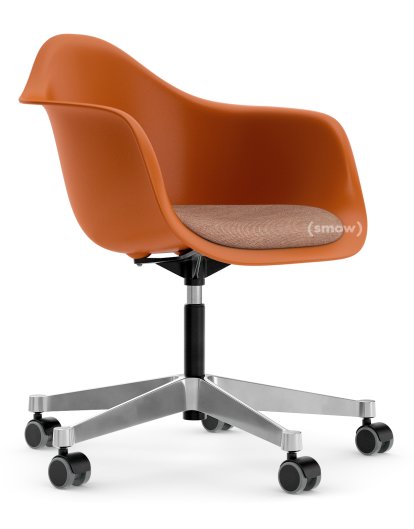 Eames Plastic Armchair RE PACC, Orange rouille, Avec coussin d'assise, Cognac / ivoire