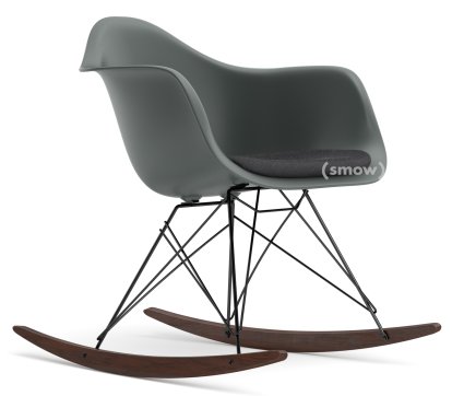 Eames Plastic Armchair RE RAR avec rembourrage, Gris granit, Avec coussin d'assise, Gris foncé, Sans passepoile, Basic dark/érable foncé