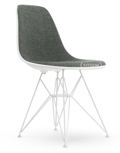 Eames Plastic Side Chair RE DSR, Blanc non-RE, Rembourrage intégral, Nero / ivoire, Version standard - 43 cm, Revêtement blanc