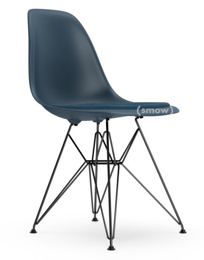 Eames Plastic Side Chair RE DSR, Bleu océan, Avec coussin d'assise, Bleu océan / gris foncé, Version standard - 43 cm, Revêtement basic dark