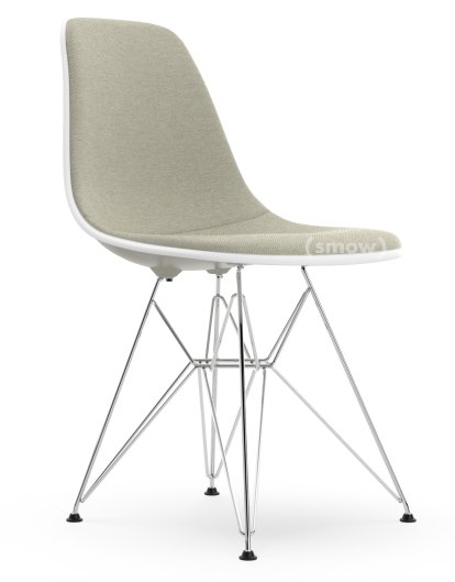 Eames Plastic Side Chair RE DSR, Galet, Rembourrage intégral, Gris chaud / ivoire, Version standard - 43 cm, Chromé