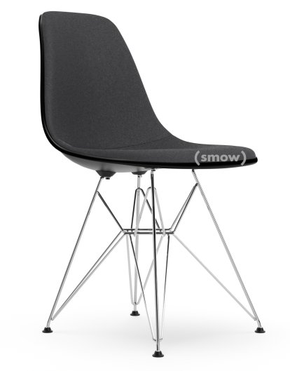 Eames Plastic Side Chair RE DSR, Noir profond , Rembourrage intégral, Gris foncé, Version standard - 43 cm, Chromé