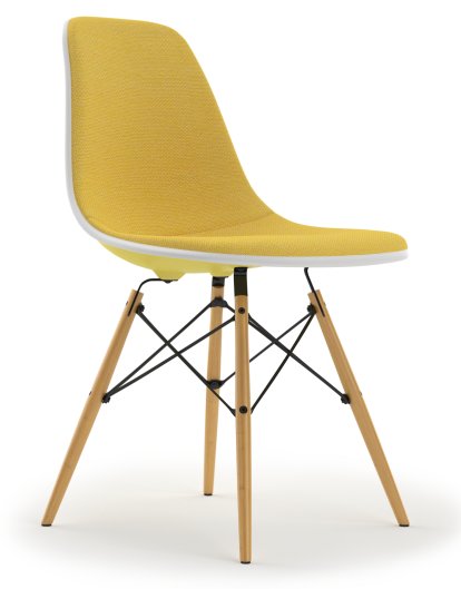 Eames Plastic Side Chair RE DSW, Citron, Rembourrage intégral, Jaune / ivoire, Version standard - 43 cm, Érable nuance de jaune