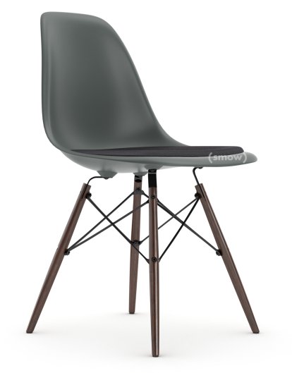 Eames Plastic Side Chair RE DSW, Gris granit, Avec coussin d'assise, Gris foncé, Version standard - 43 cm, Érable foncé
