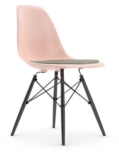 Eames Plastic Side Chair RE DSW Rose pâle|Avec coussin d'assise|Gris chaud / ivoire|Version standard - 43 cm|Érable noir