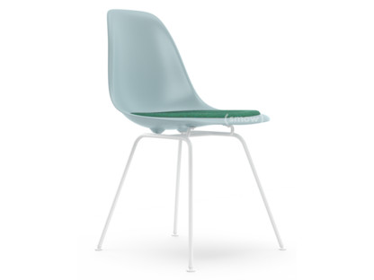 Eames Plastic Side Chair RE DSX, Gris bleuté, Avec coussin d'assise, Menthe / forêt, Version standard - 43 cm, Revêtement blanc