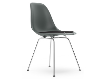 Eames Plastic Side Chair RE DSX, Gris granit, Avec coussin d'assise, Gris foncé, Version standard - 43 cm, Chromé