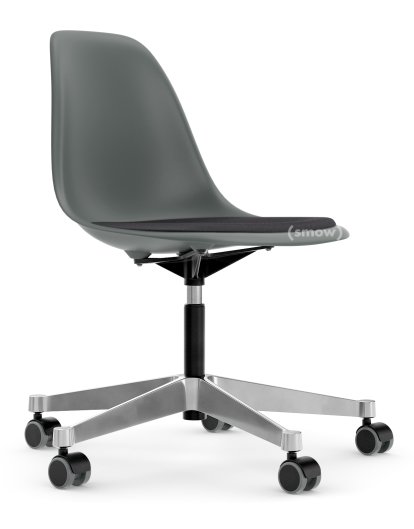Eames Plastic Side Chair RE PSCC, Gris granit, Avec coussin d'assise, Gris foncé