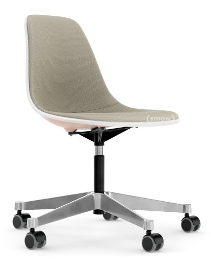 Eames Plastic Side Chair RE PSCC, Rose pâle, Rembourrage intégral, Gris chaud / ivoire