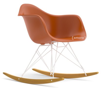 Fauteuil Eames Plastic Armchair RE RAR, Orange rouille, Revêtement blanc, Érable nuance de jaune